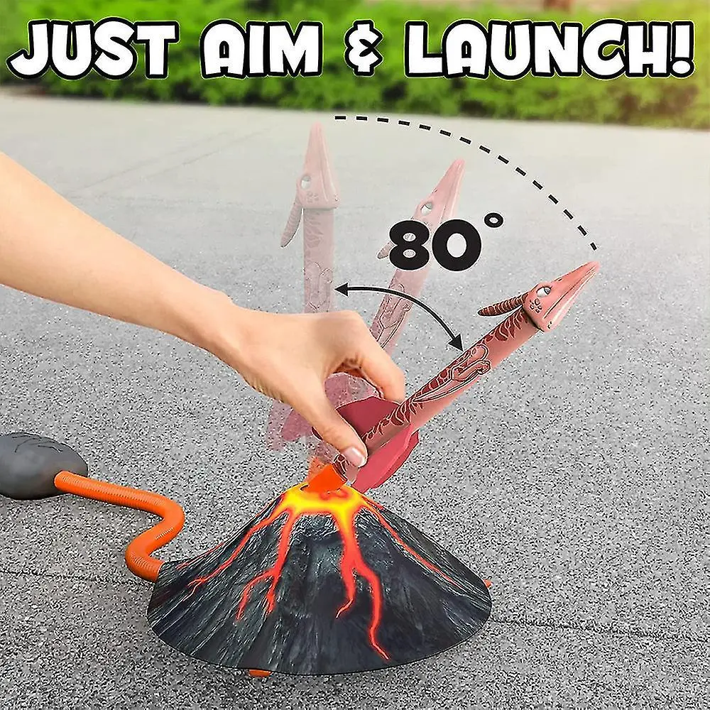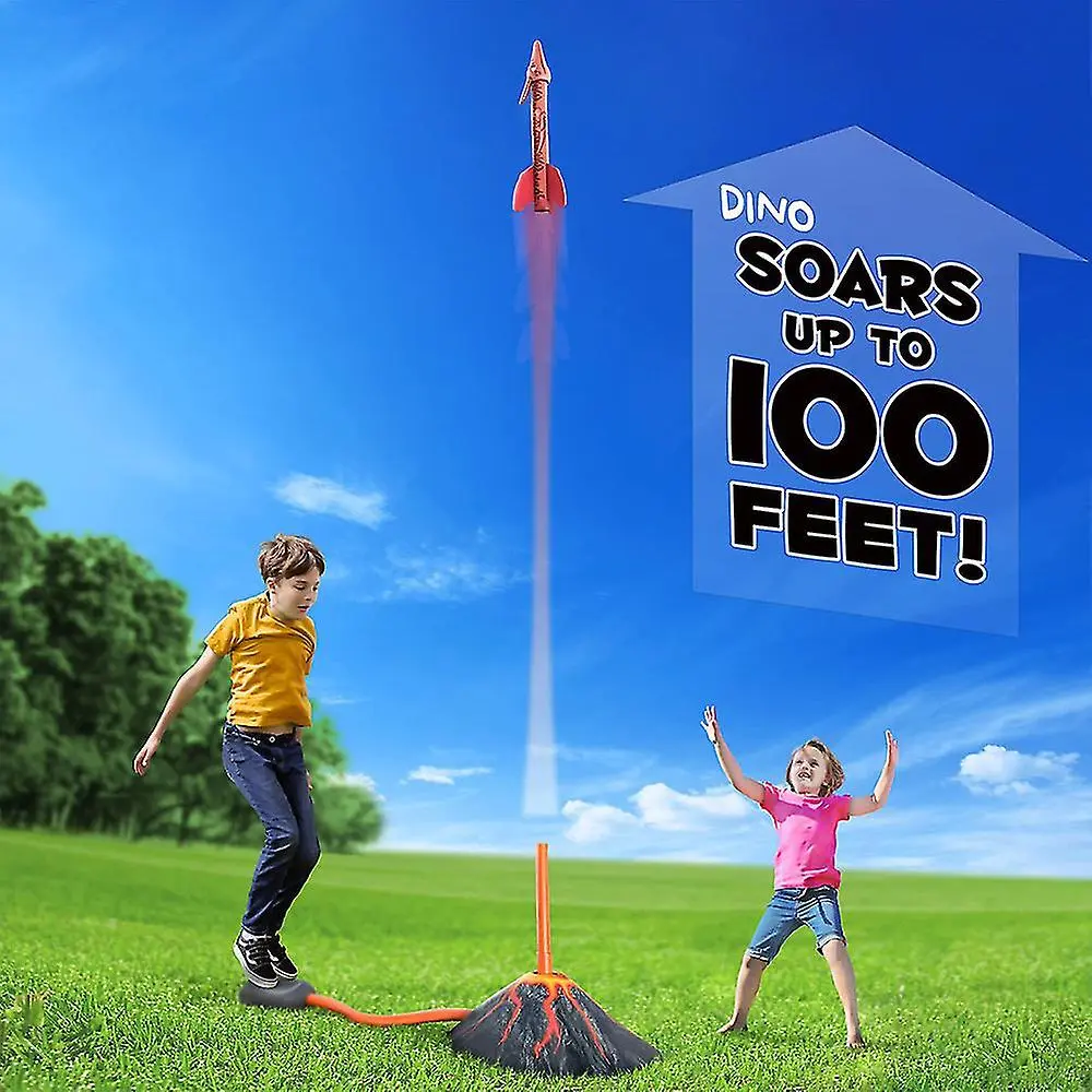 Kids will have a blast stomping the volcano launcher and blasting dinosaur rockets up to 100 ft. high