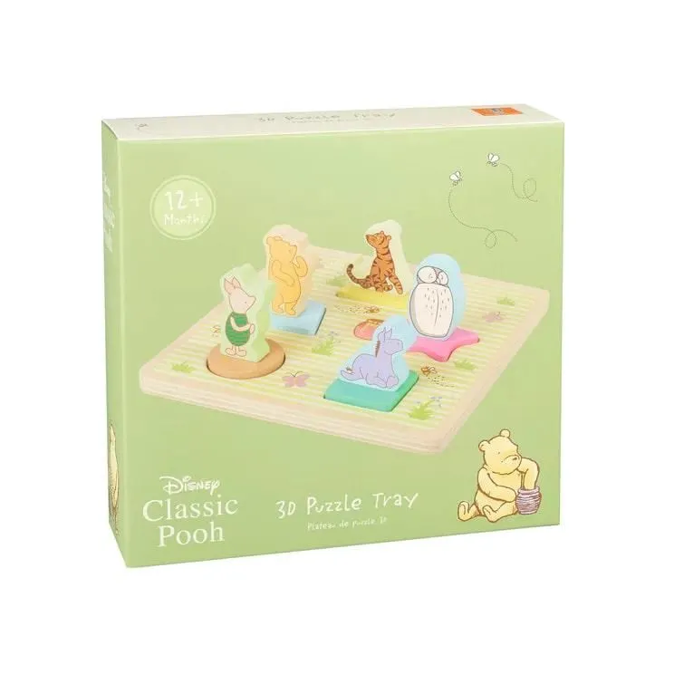 Beautifully painted wooden puzzle with lift-out pieces, featuring the favourite characters from Classic Pooh. The pieces are all different shapes and colours, to match with the holes, so a great toy to develop shape and colour recognition as well as hand-eye coordination. ©Disney. Based on the ‘Winnie the Pooh’ works by A.A. Milne and E.H Shepard.